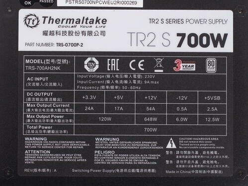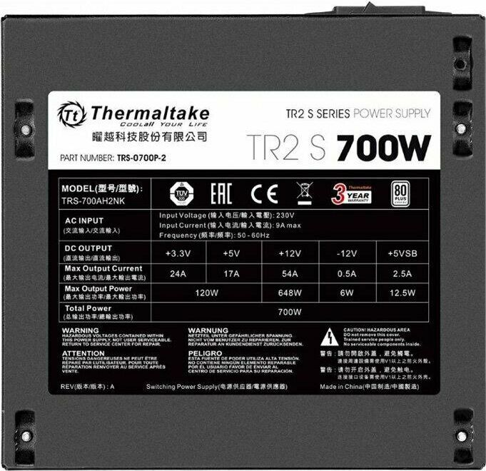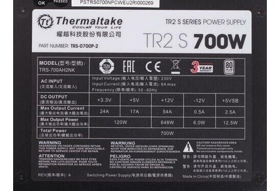 THERMALTAKE Блок питания ATX 700W TR2 S 80+ white (20+4pin) APFC 120mm fan 6xSATA RTL