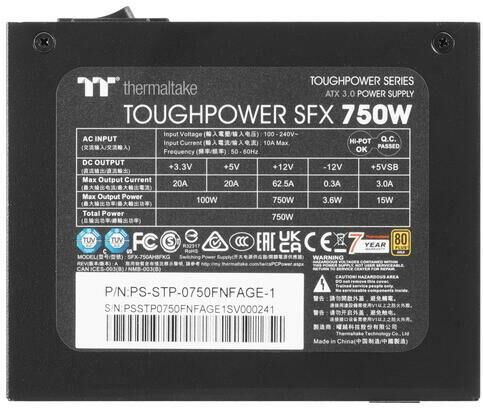 THERMALTAKE Блок питания SFX 750W Toughpower SFX750 Gen.5 80+ platinum (20+4pin) APFC 90mm fan 8xSAT