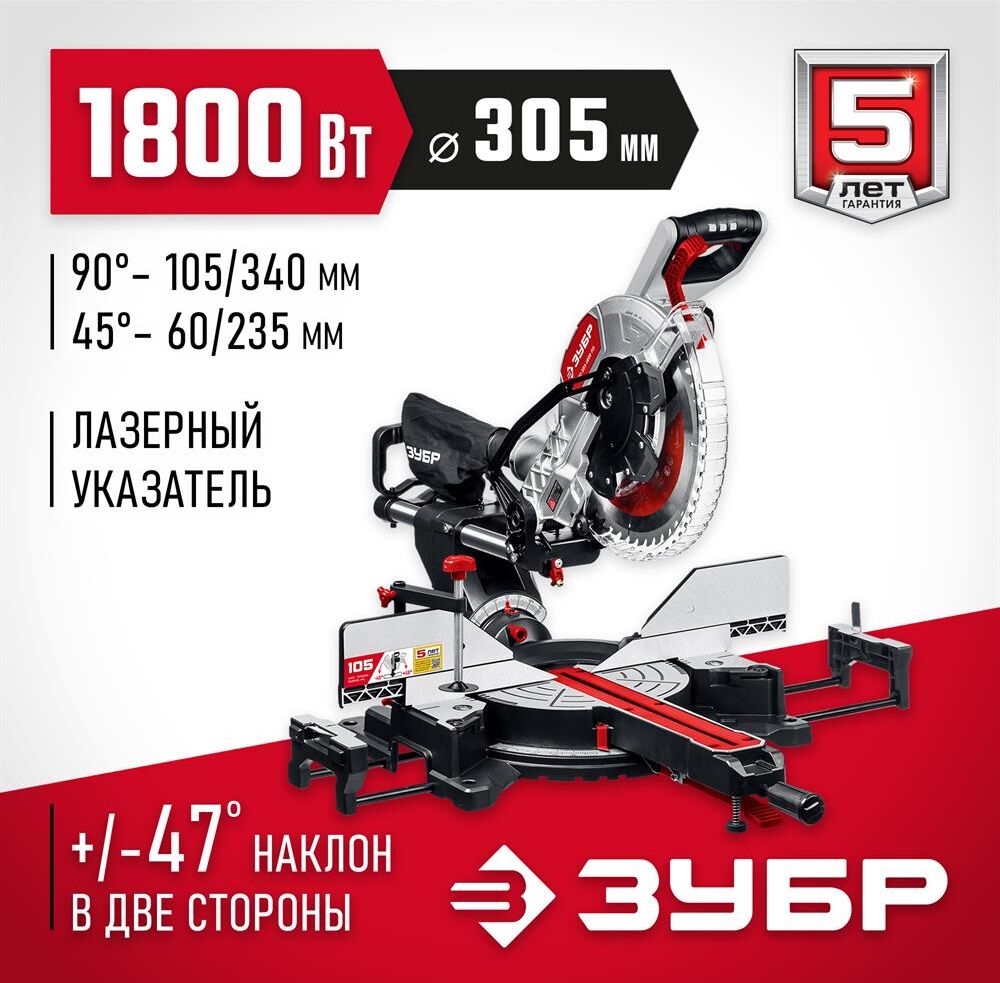 Торцовочная пила ЗУБР ЗПТ-305-1800 ПЛ пила торцовочная с протяжкой