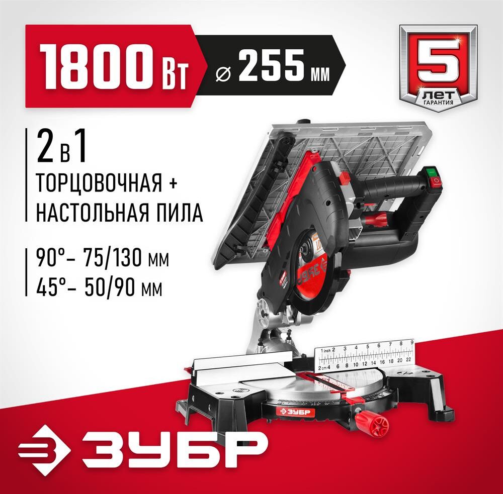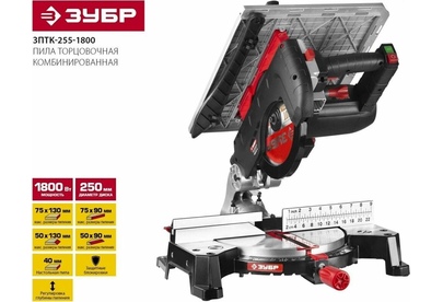 Торцовочная пила ЗУБР ЗПТК-255-1800 Пила торцовочная комбинированная