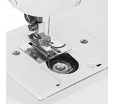 Электромеханическая, горизонтальный челнок, 12 швейные операции, петля полуавтомат, мощность 7Вт., нитеобрезатель на корпусе, лупа для заправки иглы (крышка челночного отсека), два положения подьема лапки, регулировка скорости шитья на корпусе, возможность шитья без педали, рукавная платформа, отсек для аксессуаров под откидным корпусом.