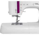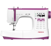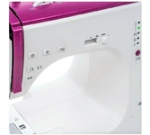 439 операций, 13 видов петель, ЖК дисплей, нитевдеватель, горизонтальный челнок, прописные и печатные буквы англ.алфавита, печатные буквы русского алфавита, память на 40 символов, 2 ячейки памяти хранения слов, плавная регулировка скорости на корпусе, рег