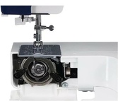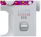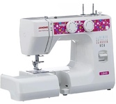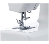 Электромеханическая швейная машина; 25 швейных операций: прямая строчка, зигзаг, эластичный зигзаг потайные строчки, трикотажная строчка, трикотажный зигзаг, декоративные строчки, оверлочные строчки, петля-автомат; Регулятор натяжения верхней нити; Регулятор ширины зигзага; Вертикальный челнок; Рычаг обратного хода; Металлические катушечные стержни; Легко пристегивающаяся лапка; Дополнительный подъём лапки; Встроенный нитеобрезатель; Встроенный нитевдеватель; Свободный рукав; Отсек для хранения аксессуаров; Светодиодное освещение; Длина стежка, мм: от 0 до 4; Количество петель1; Максимальная ширина стежка, мм: 5; Расположение катушечных стержней: Вертикальное; Регулировка длины стежка; Регулировка ширины зигзага