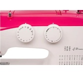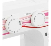 Электромеханическая швейная машина; 25 швейных операций: прямая строчка, зигзаг, эластичный зигзаг потайные строчки, трикотажная строчка, трикотажный зигзаг, декоративные строчки, оверлочные строчки, петля-автомат; Регулятор натяжения верхней нити; Регулятор ширины зигзага; Вертикальный челнок; Рычаг обратного хода; Металлические катушечные стержни; Легко пристегивающаяся лапка; Дополнительный подъём лапки; Встроенный нитеобрезатель; Встроенный нитевдеватель; Свободный рукав; Отсек для хранения аксессуаров; Светодиодное освещение; Длина стежка, мм: от 0 до 4; Количество петель1; Максимальная ширина стежка, мм: 5; Расположение катушечных стержней: Вертикальное; Регулировка длины стежка; Регулировка ширины зигзага