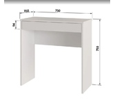 Стол письменный исп.1 Найс выполнен в современном классическом дизайне с нотками скандинавского минимализма. Он прекрасно впишется в любой интерьер. Компактные размеры позволяют разместить стол даже в небольшой комнате или кабинете, создавая уют и порядок. Белый цвет визуально расширяет пространство и наполняет его светом. Данная модель позволяет разместить всё необходимое для комфортной работы за ноутбуком или компьютером. Стол оборудован выдвижным ящиком для хранения канцелярских принадлежностей и документов. Размеры: В*Г*Ш (750*350*750) Изготовлено из ЛДСП 16 мм, торцы облицованы кромкой ПВХ 0,4мм в цвет материала Дополнить стол можно открытым шкафом для документов из коллекции Найс. Материал каркаса: ЛДСП белый Материал фасадов: ЛДСП белый Направляющие ящиков: роликовые. Срок службы (мес.) 120 Гарантия (мес.) 24