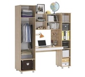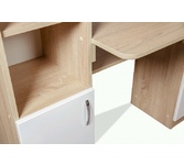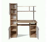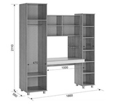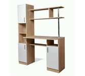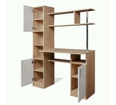 Размеры: ШхВхГ (1500х1550х600)мм. Компьютерный стол, комбинированный с открытой стеллажной системой, позволяет создать удобное и функциональное рабочее место на минимальной площади.На широкой прямой столешнице комфортно помещается ноутбук или планшет; при необходимости за столом можно работать с бумажными документами.Стеллаж заполняется книгами, учебниками, компьютерными принадлежностями, сувенирами. Вся конструкция выполнена из ЛДСП; простые формы оживляются контрастным сочетанием декоров – белый цвет и имитация натурального дерева.Модель предназначена для современных интерьеров.