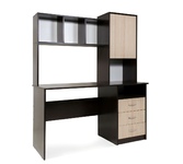 Компьютерный стол с пеналом, тремя выкатными ящиками, нишей под принтер и открытыми полками для книг. Стол позволяет легко разместить большое количество вещей и оргтехнику. Размер Ш х Г х В 1335х550х1680. Цвет: Венге/Ясень