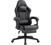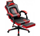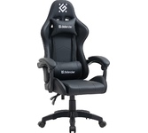 Стильное игровое кресло с подставкой под ноги, регулируемым наклоном спинки. В комплект входят шейная и поясничная подушки. Обивка выполнена из прочной мягкой экокожи черного цвета.