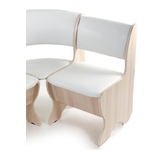 Описание: Набор мебели для кухни включающий в себя угловую скамью, стол и два табурета. В угловой скамье под сиденьями расположены два ящика Каркас ЛДСП. Покрытие верхней части столешницы стола - ЛДСП, кромка ПВХ -1мм. В целях безопасности и придания лучш