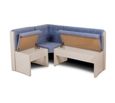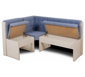 В угловой скамье под сиденьями расположены два ящика .Угловая скамья собирается как в правом ("Г"), так и в левом исполнении ("7"). Размеры: Ширина: 1500 (1100) мм. Высота: 860 мм. Глубина: 520 мм. Ящик для ханения: да. Материал: Экокожа. Наполнитель: Пенополиуретан (ППУ). Материал корпуса (каркаса): ЛДСП-16 мм.