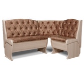 Описание: Набор мебели для кухни с классической красивой каретной стяжкой, включающий в себя угловую скамью, стол и два табурета. В угловой скамье под сиденьями расположены два ящика. Каркас ЛДСП. Покрытие верхней части столешницы стола - термостойкий пла