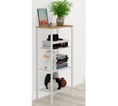 Изделие предназначено для хранения домашних и офисных предметов. Представляет собой стеллаж с 4 полками, выполненными из просечно-вытяжного листа и верхней полки из ЛДСП. Разборный каркас состоит из стальной профильной трубы 15х25 мм. В комплект входят регулируемые пластиковые опоры. Все изделие окрашено однотонной, порошковой краской. Допустимая нагрузка на полки до 8 кг.