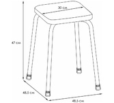 Материал — Стальная труба диаметром 22 мм; полимерно-порошковое покрытие; ДСП толщиной 16 мм, поролон, искусственная кожа. Индивидуальная упаковка — 485х485х470 см. Габариты (Д*Ш*В) — 48,5х48,5х47 см. Максимальная нагрузка, кг — до 170 кг.