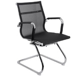 Подлокотники Металлические с пластиковыми накладками;Поясничная поддержка; Полозья Металлические хромированные; Материал обивки Сетка+ткань; Материал набивки Вспененный полиуретан плотностью 22-25 кг/куб.м; Цвет Черный; Допустимая нагрузка 120.