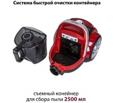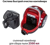 с системой очистки мультициклон Максимальная мощность 2200 Вт Мощность всасывания 400 Вт Объем контейнера 3,5 л Телескопическая трубка всасывания Регулировка мощности на корпусе HEPA фильтр Длина шнура 5 м Радиус действия 7,5 м