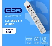 CBR Сетевой фильтр CSF 2606-5.0 White, 6 евророзеток, длина кабеля 5 метров, цвет белый (пакет) Описание Сетевой фильтр CBR CSF 2606-5.0 — это надежное и функциональное устройство для защиты вашей электроники от скачков напряжения, коротких замыканий и других проблем с электропитанием. Благодаря шести евророзеткам вы сможете подключить сразу несколько устройств, а длинный кабель длиной 5 метров обеспечит удобство использования на большом расстоянии от розетки.
