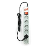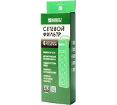 Сетевой фильтр-удлинитель с дополнительной розеткой, 220 В, номинальный ток нагрузки 10А, номинальная мощность нагрузки 2,2кВт, защита от короткого замыкания, количество розеток 5 + 1 б/заземления, корпус - негорючий пластик, длина - 2 м, цвет: серый.