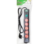 Сетевой фильтр-удлинитель с дополнительной розеткой, 220 В, номинальный ток нагрузки 10А, номинальная мощность нагрузки 2,2кВт, защита от короткого замыкания, количество розеток 5 + 1 б/заземления, корпус - негорючий пластик, длина - 5 м, цвет: серый.