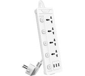 сетевой фильтр, 4 розетки, макс. нагрузка 2500 Вт, макс. ток 10 А, USB, заземление, выключатель на корпусе, длина кабеля: 2 м, белый