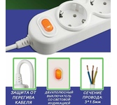 Входная вилка, тип: EURO. Длина шнура: 15. Максимальный ток нагрузки: 16. Максимальная нагрузка: 3500. Количество выходных розеток: 3. Габариты упаковки (ед) ДхШхВ: 0.32x0.06x0.1. Вес упаковки (ед): 1.04. Страна производства: Китай. Гарантия: 12 мес.. Цвет: белый. Максимальная нагрузка: 3500 Вт. Входная вилка: EURO. Количество выходных розеток: 3. Длина шнура: 15 м
