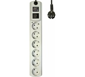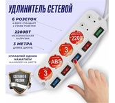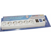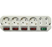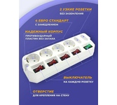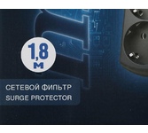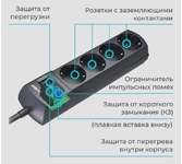 5 розеток (4 евро+1), снабжен варисторной защитой от импульсных помех и грозового разряда, имеет защиту от перегрузки и тока короткого замыкания, 3 м