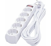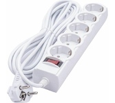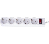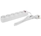 Cетевой фильтр, количество розеток - 5 (евростандарт с заземлением), номинальный ток нагрузки - 10А, номинальное входное напряжение - 220В, корпус из ударопрочного негорючего материала, длина кабеля - 3,0 м.