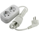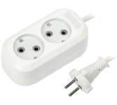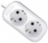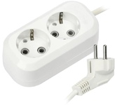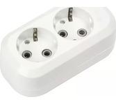 Колодка, количество розеток - 2, номинальное напряжение: 250 В; частота: 50 Гц; номинальный ток: 16 А; материал корпуса: АБС-пластик; климатическое исполнение: УХЛ-3; степень защиты от влаги и пыли: IP-20; Цвет: белый.
