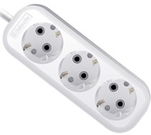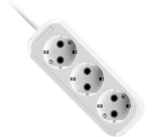 Сетевой удлинитель с общим выключателем. Макс. мощность 2300Вт, 10А, 3 евророзетки с заземлением, длина кабеля 1,5 метра. Цвет белый.
