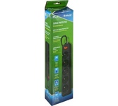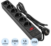 Сетевой фильтр-удлинитель с USB зарядкой ExeGate SP-6-USB-1.8B (6 евророзеток с заземлением, 2 USB-A 2A, 1.8м, защита от перегрузки, выключатель с подсветкой, черный)