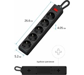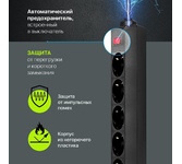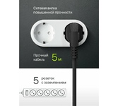 Защита от перегрузки и скачков напряжения Сетевой Колодка на 5 розеток. Длина провода 5 м. Провод ПВС с сечением 3*0,75 мм? Розетки с заземление Кнопка ВКЛ/ВЫКЛ Макс нагрузка 2200 Вт Сила тока 10А Негорючий пластик Цвет- черный