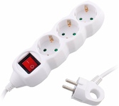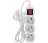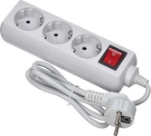 Колодка на 3 розетки Длина провода 1,5 м. Провод ПВС с сечением 3х0,75 мм2. Заземление Кнопка включения Защитные шторки от детей Макс нагрузка 2200 Вт Сила тока 10 А Эргономичная вилка Материал - негорючий, ударопрочный РР-пластик. Корпус неразборный. Цвет-белый
