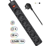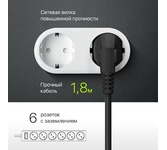 Сетевой фильтр, номинальное напряжение: 220 В/ 50-60 Гц, мощность нагрузки 2200 Вт, максимальный ток нагрузки 10А, защита от перегрузок и короткого замыкания, на «борту» имеет 6 розеток евростандарт, длина шнура 1,8 м.