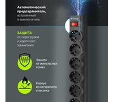 Защита от перегрузки и скачков напряжения Сетевой Колодка на 6 розеток. Длина провода 5 м. Провод ПВС с сечением 3*0,75 мм? Розетки с заземление Кнопка ВКЛ/ВЫКЛ Макс нагрузка 2200 Вт Сила тока 10А Негорючий пластик Цвет- черный