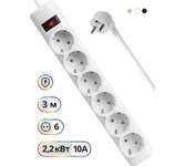 Сетевой фильтр, номинальное напряжение: 220 В/ 50-60 Гц, мощность нагрузки 2200 Вт, максимальный ток нагрузки 10А, защита от перегрузок и короткого замыкания, на «борту» имеет 6 розеток евростандарт, длина шнура 3 м