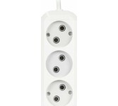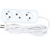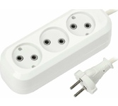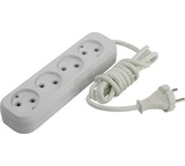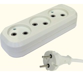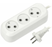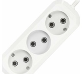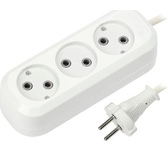 Номинальное напряжение, частота: 230В, 50Гц / максимальный ток нагрузки: 10А / максимально допустимая суммарная мощность нагрузки: 2200Вт (2,2 кВт) / тип провода (кабеля): ПВС / сечение кабеля: 2 х 0,75 мм? / длина провода: 1,5 м / количество штепсельных гнёзд: 3 / защитные шторки: нет / заземляющий контакт: нет / материал деталей контактных групп: латунь / материал колодки: пластик / степень защиты IP20 / крепление «Quick Fix» /