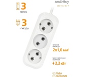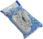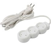Удлинитель, количество розеток - 3, номинальный ток, А - 10, номинальное напряжение: 250 В; частота: 50 Гц; тип провода: ПВС 2x1,0мм; материал корпуса: АБС-пластик; климатическое исполнение: УХЛ-3; степень защиты от влаги и пыли: IP-20; длина провода - 3 м.