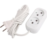 Удлинитель, количество розеток - 2, номинальный ток, А - 10, номинальное напряжение: 250 В; частота: 50 Гц; тип провода: ПВС 2x1,0мм; материал корпуса: АБС-пластик; климатическое исполнение: УХЛ-3; степень защиты от влаги и пыли: IP-20; длина провода - 3 м.