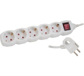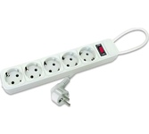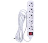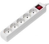 Сетевой фильтр с общим выключателем. Макс. мощность 2300Вт, 10А, 5 евророзеток с заземлением, защитные шторки, длина кабеля 1.8 метра. Цвет белый.