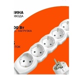 5 мест, тумблер питания со светодиодной индикацией, корпус из высококачественного пластика, трехжильный кабель ПВС, длина кабеля: 4,5 м, номинальное напряжение: 220 В, рабочая частота: 50–60 Гц, суммарная мощность нагрузок: 2,2кВт.