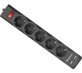 Максимальная рассеиваемая энергия: 220 Дж, Защищаемые цепи: фаза-ноль, Защита от перегрузки и короткого замыкания: автоматический несгораемый предохранитель, встроенный в выключатель, Кол-во розеток: 5 шт.,Розетки с заземлением: 5 шт., Номинальное напряжение/частота: 230 В / 50 Гц, Максимальная суммарная мощность нагрузки: 2200 Вт, Максимальный ток нагрузки: 10 А, Длина: 3.0 м, Напряжение на USB-портах: 5 В, Кол-во USB-портов для зарядки: 2 шт., Максимальный ток USB-порта: 2.1 А, Токовая защита USB-портов, USB-порт для зарядки устройств, Крепление на стену.