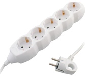 Колодка на 5 розеток Длина провода 5 м. Провод ПВС с сечением 3х0,75 мм2. Заземление Макс нагрузка 2200 Вт Сила тока 10 А Эргономичная вилка Материал - негорючий, ударопрочный РР-пластик. Корпус неразборный. Цвет-белый