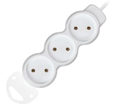 Номинальное напряжение, частота: 230В, 50Гц / максимальный ток нагрузки: 10А / максимально допустимая суммарная мощность нагрузки: 2200Вт (2,2 кВт) / тип провода (кабеля): ПВС / сечение кабеля: 2 х 0,75 мм? / длина провода: 3 м / количество штепсельных гнёзд: 3 / защитные шторки: нет / заземляющий контакт: нет / материал деталей контактных групп: латунь / материал колодки: пластик / степень защиты IP20 / крепление «Quick Fix» /