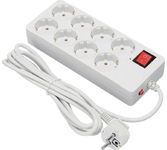 Омедненный (CCA) основной силовой кабель и все проводники. Длина шнура - 5м. Количество выходных розеток - 8. Входная вилка, тип - EURO. Выходные розетки с заземлением типа EURO - 8. Номинальное напряжение питающей сети - 220В. Максимальная рассеиваемая энергия - 107 Дж. Максимальный импульсный ток помехи - 4500A. Частота сети - 50 Гц. Максимальная нагрузка - 2200Вт. Максимальный ток нагрузки - 10A. Подавление высокочастотных помех. Защита от короткого замыкания - биметаллический размыкатель. Защита от перегрева. Автоматический (термобиметаллический) предохранитель. Подавление импульсных помех. Цвет - белый.