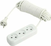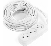 Удлинитель, количество розеток - 3, номинальный ток, А - 10, номинальное напряжение: 250 В; частота: 50 Гц; тип провода: ПВС 2x1,0мм; материал корпуса: АБС-пластик; климатическое исполнение: УХЛ-3; степень защиты от влаги и пыли: IP-20; длина провода - 15 м.