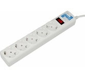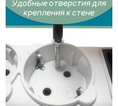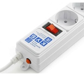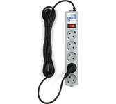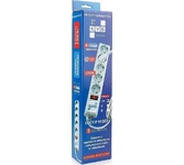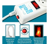 защита от импульсн помех, короткого замык и перегрузок, 220В, макс ток нагрузки 10А, макс поглощ энергия 90Дж, кабель ПВС-ВП 3х0.75мм2, Выключ – со светодиод индикац и коммутац двух проводников (фазы и нуля), 5 заземл евро-розеток, корпус – негорючий плас