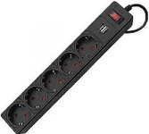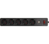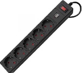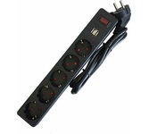 Сетевой фильтр + 2 USB порта, 10А, 2 200 Вт, 5 розеток, длина 1,8 м, цвет - черный.