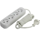 Удлинитель, количество розеток - 4, номинальный ток, А - 10, номинальное напряжение: 250 В; частота: 50 Гц; тип провода: ПВС 2x1,0мм2; материал корпуса: АБС-пластик; климатическое исполнение: УХЛ-3; степень защиты от влаги и пыли: IP-20; длина провода - 3 м.