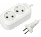 Удлинитель, количество розеток - 2, номинальный ток, А - 10, номинальное напряжение: 250 В; частота: 50 Гц; тип провода: ПВС 2x1,0мм; материал корпуса: АБС-пластик; климатическое исполнение: УХЛ-3; степень защиты от влаги и пыли: IP-20; длина провода - 5 м.