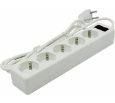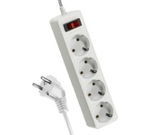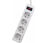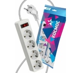 Сетевой фильтр белый на 4 гнезда с заземлением. Диаметр сечения провода - 3*0,75мм?. Индикатор сети. Номинальный ток 10А, максимальная мощность - 2200Вт. 5 лет гарантии