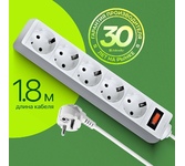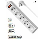 [сбр сетевые фильтры] CBR Сетевой фильтр CSF SP-5-018M-W, 10A, 5 евророзеток, защита от детей, 3x0.75мм2, медь, 1.8 м, белый